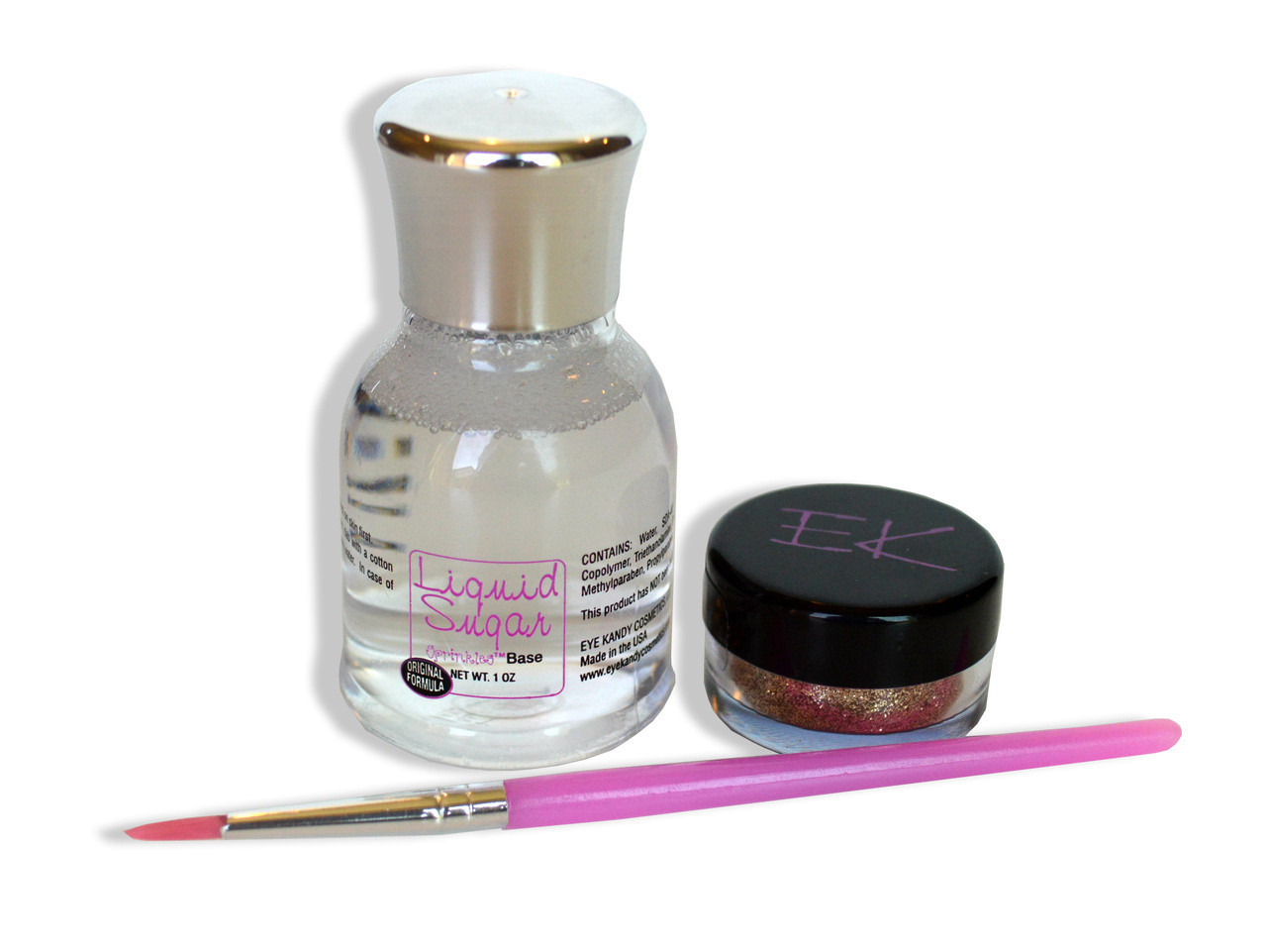 Eye Kandy Kick Starter is the perfect introduction set for everyone as it includes everything you need to feed your glitter addiction! The Kick Starter includes our Liquid Sugar base, one Eye Kandy Glitter color of your choice, and a mini applicator brush. Get your shine on!